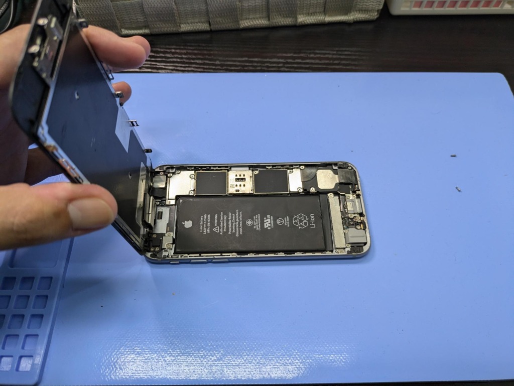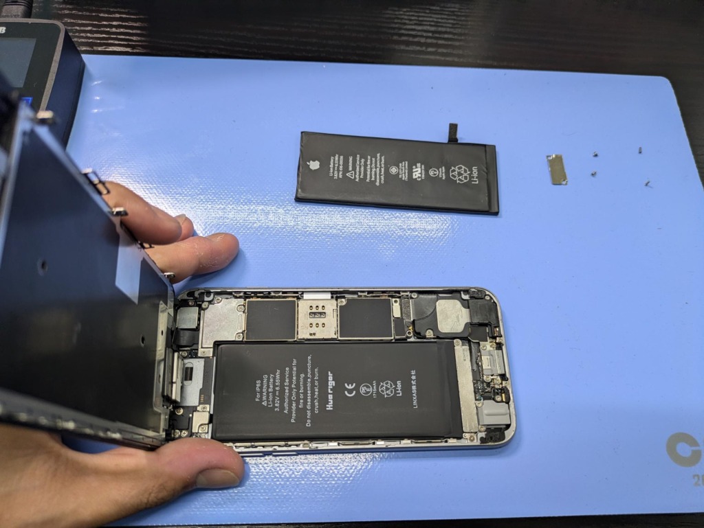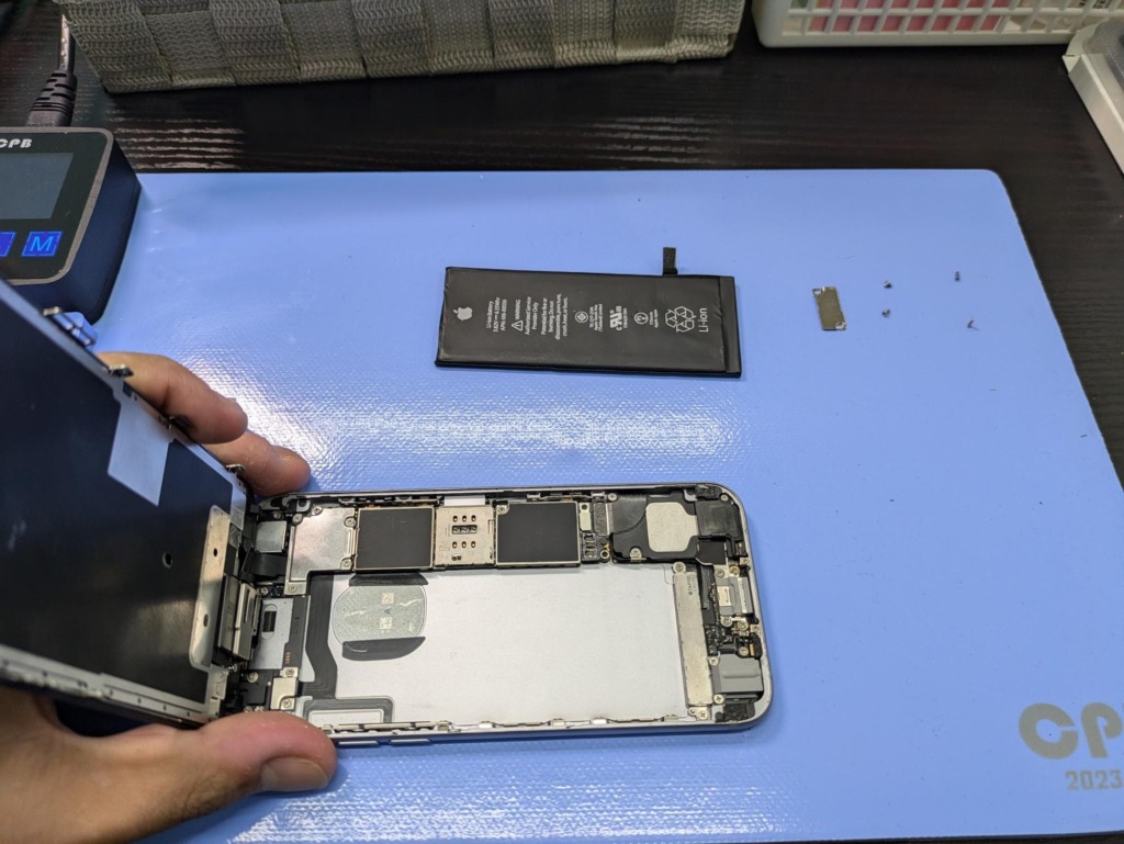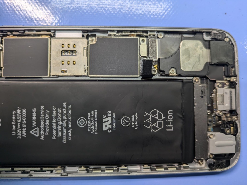 iPhone6Sのバッテリー交換修理を担当しました。お客様の端末をお預かりしバッテリー交換を実施。古いバッテリーから新しいバッテリーに交換した後、バッテリーが持続できる状態になり、お客様も改善されて良かったとおっしゃっておりました。